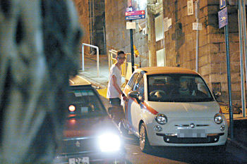 上車后,Joey即脫去口罩,雖然由蘇豪至寓所只需15分鐘車程,但為免行蹤敗露,司機(jī)Heison駕車非常警覺(jué),中途還駛往星街并停在一旁測(cè)試有否被跟,發(fā)現(xiàn)安全后才將車直駛往司徒拔道。由于當(dāng)晚下著毛毛細(xì)雨,Joey落車后體貼地用雨傘為男友遮雨,并雙雙步入Joey所住的寓所大堂。