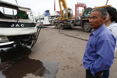昨日下午2時(shí)許,記者跟隨黃島邊防派出所民警來到黃島輪渡碼頭,見到了驚魂未定的魏學(xué)棟?!拔易蛱焱砩?點(diǎn)多在平度大澤山拉了一車石材準(zhǔn)備運(yùn)往青島火車站附近,接近1噸重?!蔽簩W(xué)棟說,他根據(jù)導(dǎo)航儀的指引,從膠州營(yíng)海上了膠州灣高速公路?!耙郧拔覜]走過這條路,全憑導(dǎo)航儀指引,我設(shè)置的目的地是青島火車站,導(dǎo)航讓我往濟(jì)南方向行駛,我就沿著走,從管家樓收費(fèi)口下來后,繼續(xù)跟著導(dǎo)航走,本以為是去膠州灣隧道,沒想到來到了黃島輪渡?!蔽簩W(xué)棟說,由于海邊霧氣太大,周圍漆黑一片,再加上自己不熟悉地形,一時(shí)沒有分辨清楚,以為是到了隧道便繼續(xù)開車,不慎一頭扎進(jìn)了海里。