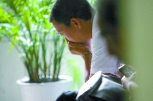 廖俊偉的父親坐在醫(yī)院的凳子上傷心不已。 (記者 王海 攝)