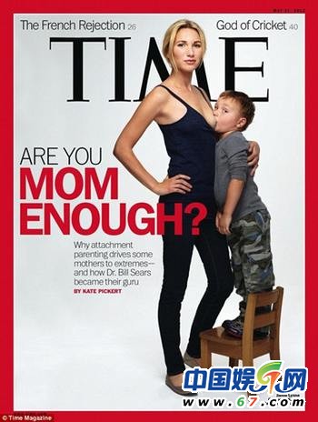 在這溫馨的節(jié)日里,美國《時(shí)代》周刊特別策劃了母親節(jié)封面。圖為個(gè)母親站立為近4歲的兒子喂奶。喂奶照封面刊發(fā)后,卻引起了網(wǎng)友們的熱議,紛紛表示,喂奶照封面雖然創(chuàng)意新穎但尺度過大“越過了紅線”。據(jù)了解,喂奶照封面上的母親來自洛杉磯的杰米,26歲的杰米是兩個(gè)孩子的母親,現(xiàn)年5歲的大兒子塞繆爾是 2010年11月從埃塞俄比亞領(lǐng)養(yǎng)的,小兒子阿拉姆為親生兒子已經(jīng)快4歲。