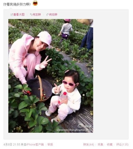 張庭帶女兒采草莓 4月8日,張庭連發(fā)3條微博,曝光一家三口外出郊游、采摘草莓的溫馨家庭畫面,久未露面的林瑞陽(yáng)也現(xiàn)身照片之中。 4月6日還身在北京、現(xiàn)身東宮影劇院觀看話劇的張庭,為了趕回上海陪女兒摘草莓,4月7日起了個(gè)大早,并于08點(diǎn)14分發(fā)表微博感嘆道:“好困哦,為了帶女兒去采草莓,只能坐一早班機(jī),累?!?/p> 4月8日21點(diǎn)55分,張庭上傳了她和女兒林家菱采草莓的溫馨合 22點(diǎn)整,張庭上傳了第二張照片,照片中的林家菱戴著大墨鏡,回過(guò)頭來(lái)專注看著鏡頭,手里拿著的一顆大草莓,已經(jīng)被咬了一口。張庭詼諧道:“寶貝別偷懶??!” 久未露面的林瑞陽(yáng)隨后出現(xiàn)在22點(diǎn)04分發(fā)布的第三張照片中,微微發(fā)福的他笑容滿面,開著一輛農(nóng)用小三輪,載著神氣的女兒,父女看起來(lái)親密十足。張庭為此圖貼切配文:“看我在鄉(xiāng)間小道騎車,帥吧!” 張庭于2009年年底誕下女兒林家菱,又于2012年1月6日順利產(chǎn)下兒子林秉翰,兒女雙全。產(chǎn)后的她僅一個(gè)月就神速恢復(fù)了身材,并全面復(fù)出,可謂是事業(yè)、愛(ài)情、家庭三豐收,令人艷羨。 |