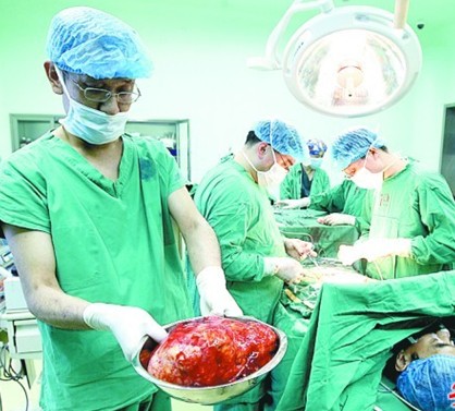 下午1時(shí)許,成功摘除腎腫瘤。