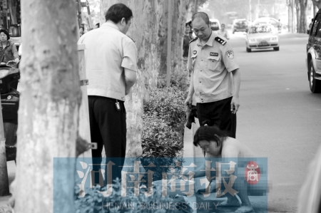????昨日上午9時(shí)45分許,鄭州市伏牛路與汝河路交叉口北200米路西,一名三四十歲的中年女子全身赤裸,站在伏牛路的快車道上不停地罵著。在她的北邊,停著一輛公交車,司機(jī)和乘客無奈地坐在車?yán)?。約10分鐘