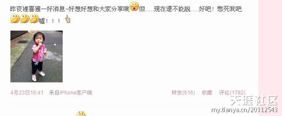 網(wǎng)絡(luò)截圖,安以軒在微博上說有一個(gè)驚天好消息
