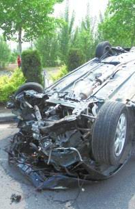 ????轎車四腳朝天躺在路上