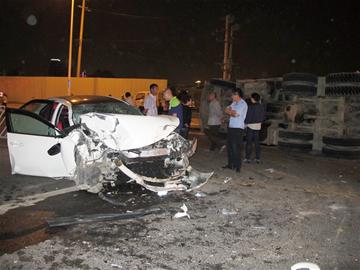 轎車頂翻自卸車酒青年否認開車