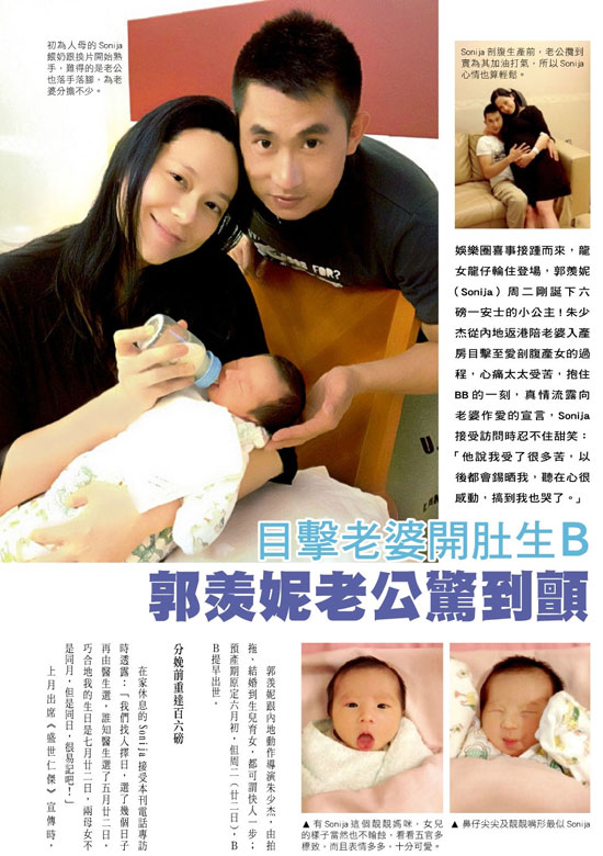 生兒育女,都可謂快人一步;預(yù)產(chǎn)期原定六月初,但周二(22日),BB提早出世。