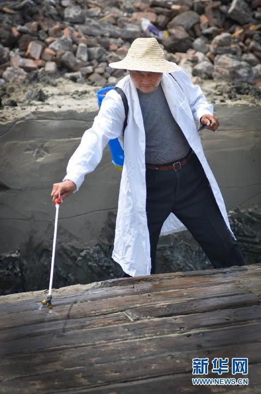 5月28日,在天津市北辰區(qū)張灣村明代沉船遺址考古發(fā)掘現場,工作人員在對沉船進行保護處理。近日,天津市文化遺產保護中心在京杭大運河天津段考古發(fā)掘出兩艘明代沉船,出土元、明、清時期銅、鐵、瓷、陶、骨、木、竹等不同質地文物及標本600余件。這兩艘沉船均為木質結構,第一艘沉船損毀嚴重。第二艘沉船整體保存較好,呈東西向覆扣在河道底部,全長約13米。這兩艘沉船的發(fā)現對于研究中國古代漕運史、水利史、船舶發(fā)展史都有非常重要的價值,同時,也為京杭大運河申遺提供了重要的實物證據。