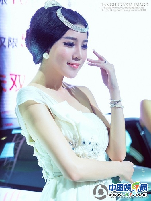 2012華中車展車模真空擠胸 尺度不輸干露露(組圖)