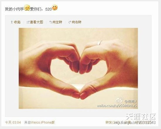 5月20日馮紹峰曬戒指,這天是“520”我愛你的日子,馮紹峰左手中指指環(huán),倪妮右手中指指環(huán),相差25分鐘,發(fā)出愛的宣言。