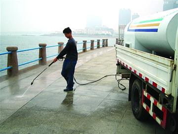拿著水槍、鏟子、小鐵刷和噴壺,30名保潔人員走上棧橋景區(qū)集中清理頑固的黑色“雀斑”,幫助棧橋恢復(fù)昔日容顏。隨著旅游旺季的到來,每天有數(shù)萬游客前往前海景區(qū)游玩。為了解決游客隨口亂吐的口香糖痕跡,棧橋景區(qū)管理處動用一輛高壓水車,30名配備“武器”的員工,用上洗衣液和火堿,足足一周時間才將頑固的口香糖鏟除,然而還能看到留下的點(diǎn)點(diǎn)黑斑。