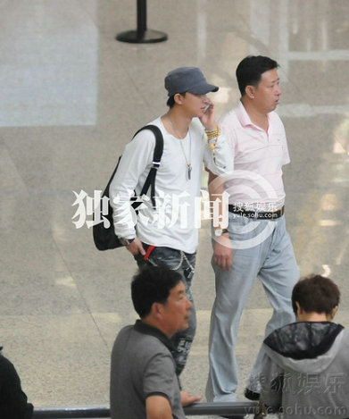 韓庚攜父親現(xiàn)身機場 指使保鏢護駕驅(qū)逐記者(組圖)