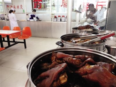 5月29日,甘肅省第二醫(yī)院食堂一角,擺放著豬蹄等藥膳。