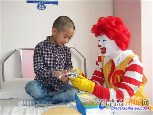 麥當(dāng)勞叔叔在病房探望小朋友并送上節(jié)日禮物
