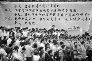 昨天,追悼會(huì)場(chǎng)外掛起詩(shī)人潘維為吳斌寫的詩(shī) 新華社發(fā)