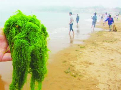 三浴近岸現(xiàn)零星滸苔(青島晚報(bào))