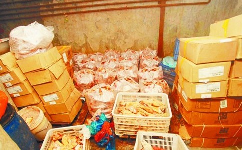 ????執(zhí)法人員還發(fā)現(xiàn)這個加工點里有五名工人,但只有3人辦理了健康證?!凹庸c的環(huán)境也不符合生產(chǎn)標準,我們已經(jīng)責令其立即停業(yè)整頓?!眻?zhí)法人員依法將加工點進行了查封,并當場查扣問題豬蹄上千斤。