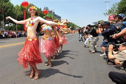 城陽市民節(jié)開幕 外國辣妹街頭跳桑巴熱舞(圖)
