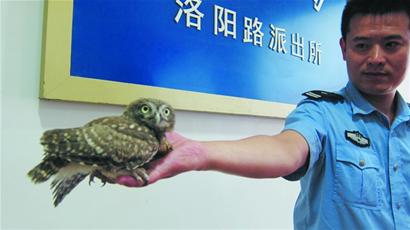 ????巴掌大小的小貓頭鷹爪子上被拴了根繩子,不時(shí)被男青年高高拋起,等它想要展翅起飛時(shí),卻被爪子上的繩子猛地拽落,重重摔在地上。幾次過(guò)后小貓頭鷹已經(jīng)精疲力盡,但男青年卻絲毫沒(méi)有停手的意思。前天上午,洛陽(yáng)路派出所民警巡邏經(jīng)過(guò)張村河邊,將這名虐待幼鳥(niǎo)的男青年帶回派出所。昨天民警聯(lián)系野生鳥(niǎo)類(lèi)保護(hù)專(zhuān)家到派出所給小貓頭鷹治傷。