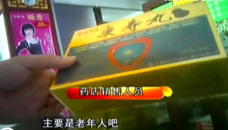 ????在威海路上的日月大藥房,記者找到了這種名叫“康壽丸”的藥品。聽說記者是想買藥,一位銷售員熱情的給記者推銷了起來。