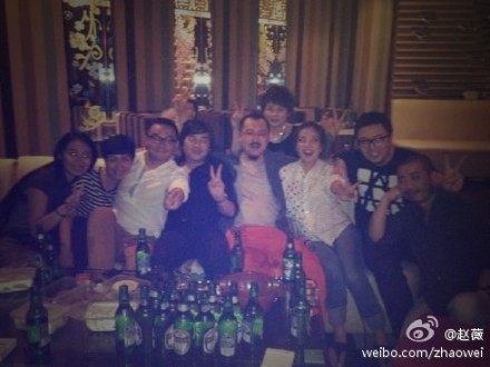 今天《畫皮2》上映,趙薇等主創(chuàng)團隊集體慶祝,身為主演的趙薇在微博上曬出與多位男性好友的親密照,特別是緊摟郭敬明,手臂相握的照片更顯出幾分曖昧。跟老友黃渤大玩貼面,是趙薇婚后少有的大尺度親密照。