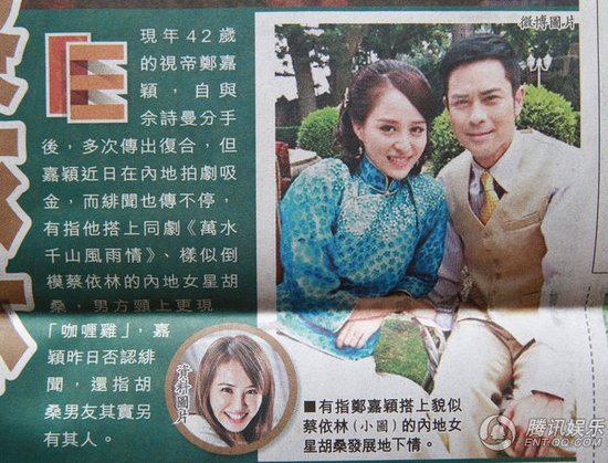 對于新戀情,鄭嘉穎昨日在電話訪問否認(rèn)說:“絕對沒這樣的事,只是網(wǎng)友網(wǎng)上惡作劇,我們沒事,胡桑是有男朋友,他都有來過片場探班,希望大家不要再惡搞。”
