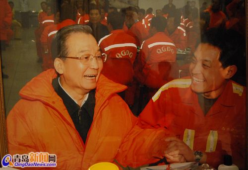 2009年元旦,溫家寶總理來青島港看望碼頭工人,與徐萬年共進(jìn)午餐