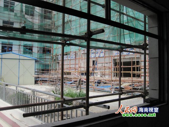 處于停工狀態(tài)的三亞中院辦公樓《(中間部分即是加裝的鋼結(jié)構(gòu))