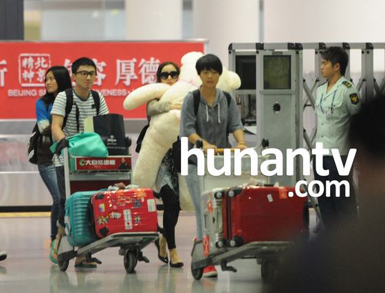楊冪獨自回京無人識 機場抱大玩具熊
