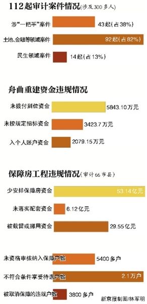 “保障性安居工程審計(jì)情況”表明,部分地方仍存在建設(shè)資金籌集不到位、審核和退出機(jī)制不健全等問(wèn)題。重點(diǎn)審計(jì)的66個(gè)市縣中,有36個(gè)少提取或少安排保障性安居工程資金53.14億元(相當(dāng)于其應(yīng)提取或安排數(shù)的14%),有11個(gè)未落實(shí)配套資金6.12億元,還有29.55億元專(zhuān)項(xiàng)資金被截留或挪用;抽查的保障對(duì)象中,有5400多戶(hù)未經(jīng)資格審核即被納入保障范圍,有2.1萬(wàn)戶(hù)不符合條件或重復(fù)享受保障待遇。