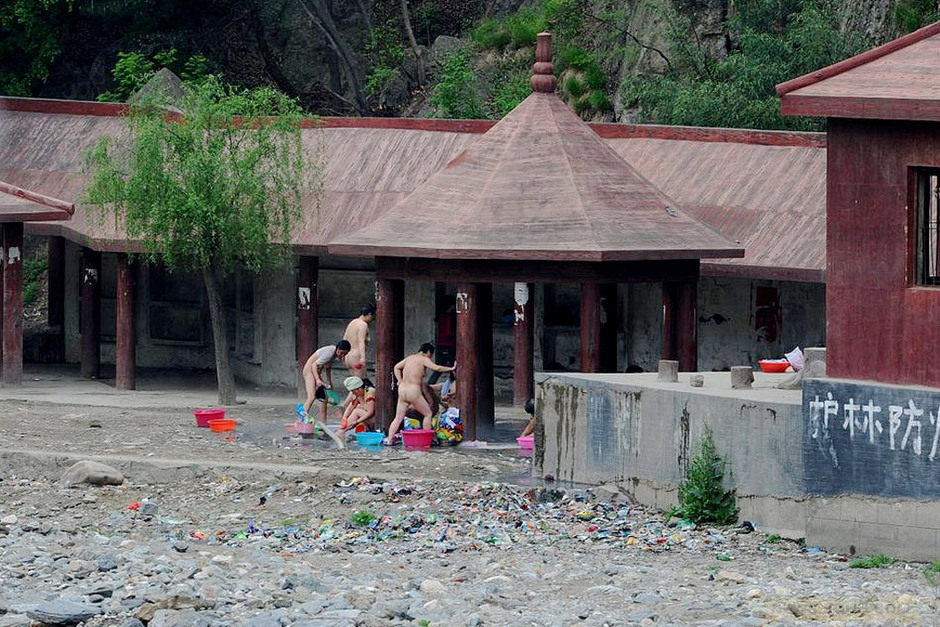 2012年4月20日,河南三門峽盧氏縣湯河鄉(xiāng),男女村民白天在路邊溫泉裸浴而不避人。當(dāng)?shù)剡@種奇特的裸浴民俗,逐漸不被年輕一代特別是女孩子們認(rèn)同,正面臨“后繼無人”的境地?!奥懵丁痹瓉硪彩且环N民俗。