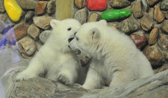 這次亮相的,正是世界首例人工成功撫育的北極小姐妹,她們是世界第8例人工繁殖的北極熊,也是唯一一對孿生姐妹。