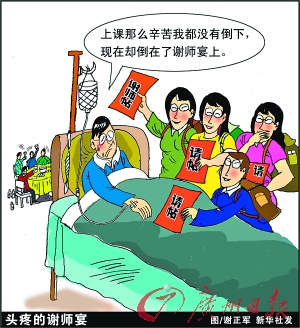 深圳羅湖水庫小學有家長近日向本報反映稱,小孩今年7月小學畢業(yè),令他不滿的是,學校聯(lián)合部分家長發(fā)起要搞“謝師宴”,每人要交400元,送禮物給老師。