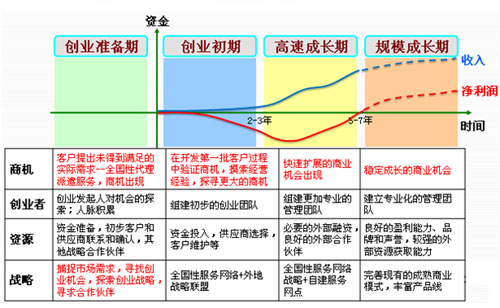 對于創(chuàng)業(yè)管理,“鳳凰曲線”主要分為“創(chuàng)業(yè)準備期”、“創(chuàng)業(yè)初期”、“高速成長期”及“規(guī)模成長期”四個時期。每個時期,創(chuàng)業(yè)者都會有不同的行為特征。比如在創(chuàng)業(yè)準備期,創(chuàng)業(yè)者需要觀察到客戶沒有得到滿足的商機,并且積極創(chuàng)新,推出新的產(chǎn)品或服務來滿足客戶需求,同時積累人脈和資金,為創(chuàng)業(yè)做好準備。那么,在創(chuàng)業(yè)初期,創(chuàng)業(yè)者則必須通過組建團隊,來迅速加大與市場接觸的面積,通過更加廣泛的客戶驗證商機并適時調(diào)整,使商業(yè)模式能夠被不斷復制,與此同時,創(chuàng)業(yè)者還需要梳理資金、供應商、客戶、團隊等多個維度的指標,使得企業(yè)的商業(yè)模式得以基本確立。當創(chuàng)業(yè)初期順利過渡后,創(chuàng)業(yè)者就迎來了最為重要的一個時期,他們要在高速成長期實現(xiàn)業(yè)務團隊的質(zhì)量提升,并實現(xiàn)規(guī)模化、快速化擴張,尤其是資本運作和擴張戰(zhàn)略顯得尤為重要。同時,也唯有跨越了這一時期,創(chuàng)業(yè)者才能真正如飛機一樣實現(xiàn)升空。而最后一個時期,需要創(chuàng)業(yè)者完成從“打江山”到“管江山”的角色轉(zhuǎn)變,更加注重管理團隊的專業(yè)化,以及穩(wěn)定的商業(yè)發(fā)展模式,只有這樣才能使創(chuàng)業(yè)型企業(yè)實現(xiàn)長線經(jīng)營和長期盈利。除了系統(tǒng)的理論研究外,李浩還將其與實踐進行了結(jié)合,主要體現(xiàn)在2011年發(fā)起的五年萬人創(chuàng)業(yè)項目——“易創(chuàng)計劃”。