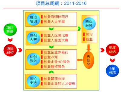 在以往的創(chuàng)業(yè)活動當中,易才集團發(fā)現(xiàn):創(chuàng)業(yè)比賽有助于發(fā)現(xiàn)和識別種子創(chuàng)業(yè)人才,其中的培訓、溝通也對創(chuàng)業(yè)者和創(chuàng)業(yè)團隊成員有實際幫助和影響,但仍然缺乏一套全程的孵化機制來幫助他們實現(xiàn)夢想。于是,2011年,易才集團再次針對大學生創(chuàng)業(yè)推出了“易創(chuàng)計劃”。這項完善的系統(tǒng)化人才培養(yǎng)方案將歷時5年,致力于培訓培養(yǎng)10000名青年大學生創(chuàng)業(yè)人,打造1個為大學生創(chuàng)業(yè)就業(yè)提供HR專業(yè)支持的公益平臺,舉辦易創(chuàng)培訓100次、每年舉行1次易創(chuàng)大賽、提供包含“創(chuàng)業(yè)企業(yè)體驗行、創(chuàng)業(yè)沙龍、創(chuàng)業(yè)企業(yè)HR服務、創(chuàng)業(yè)融資服務”等的助創(chuàng)服務,在超過100家創(chuàng)業(yè)提供上萬個實習與學習機會,并進行案例總結(jié)整理,豐富創(chuàng)業(yè)中心數(shù)據(jù)庫。