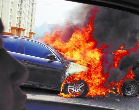 ????目擊者宋先生告訴記者:“最后面的黑色大眾寶來轎車撞到小卡車后,司機(jī)很快跑了下來,不到一分鐘,轎車就冒起煙,然后‘轟’地一下冒起火來了?;饎?shì)很大,火焰差不多把后面兩輛車都包圍了,濃煙有三四層樓那么高。寶來車前引擎蓋被撞開,兩輛車的車胎都癟了?!彼蜗壬貞浄Q,事發(fā)當(dāng)時(shí)地表溫度有三四十?dāng)z氏度,大火堆里不時(shí)傳來“噼里啪啦”的爆炸聲。
