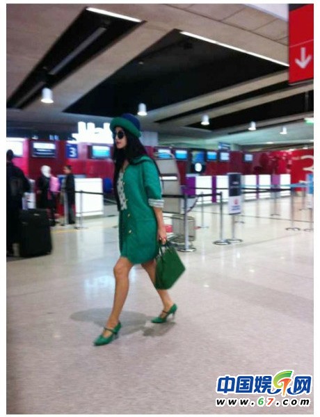 范冰冰機場秀美腿 穿綠風衣自稱女忍者神龜(組圖)