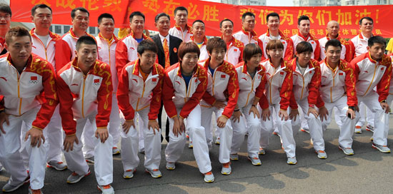 ????中國乒乓球隊也已經(jīng)出發(fā)倫敦,他們已于17日飛往倫敦,并前往利茲進行奧運開賽前最后的適應性訓練。