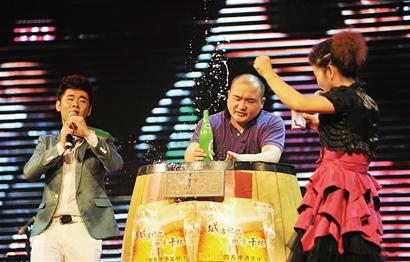 啤酒文化節(jié)開(kāi)場(chǎng),大名鼎鼎的島城 “酒王”李保成也趕到現(xiàn)場(chǎng)助興。這名吹瓶速飲“酒王”在現(xiàn)場(chǎng)擺起擂臺(tái)。他的出場(chǎng)讓不少豪爽漢子激動(dòng)不已,紛紛上臺(tái)挑戰(zhàn)。雖然激情有加,但比起吹瓶速度,“酒王”仍然顯示出自己的實(shí)力,1瓶600ml的青啤5秒97就全部喝光。