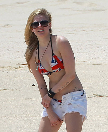 正在墨西哥度假的艾薇兒身著米字旗圖案的比基尼