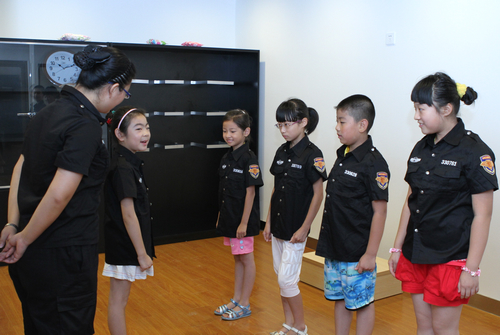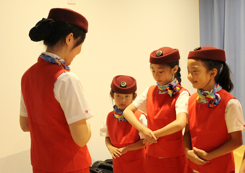 孩子們認真學習空乘禮儀