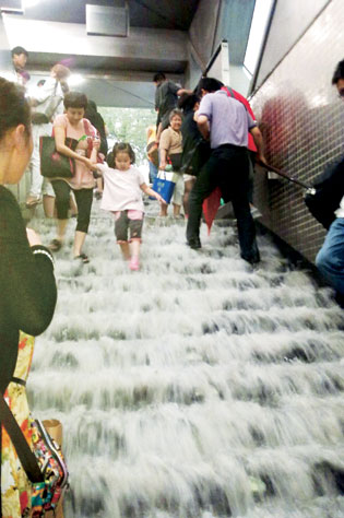 北京的暴雨讓大伙有點(diǎn)談“雨”色變,目前,青島已經(jīng)進(jìn)入了雨季,強(qiáng)降雨隨時(shí)都會(huì)光顧,這對(duì)于正在建設(shè)中青島地鐵,將是一個(gè)嚴(yán)峻的考驗(yàn)!這是網(wǎng)友拍攝的北京遭遇暴雨后,地鐵站被倒灌的情況。這樣的畫(huà)面對(duì)于匯泉廣場(chǎng)也并不陌生,因?yàn)榈貏?shì)原因,這里每年都是嚴(yán)防倒灌的重點(diǎn)部位,現(xiàn)在,地鐵站正在這里建設(shè)當(dāng)中,它能經(jīng)受住暴雨的考驗(yàn)嗎?