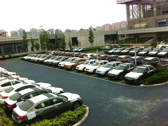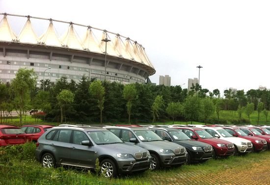 在國信體育中心轉(zhuǎn)了一圈,記者看到了寶馬、英菲尼迪、凱迪拉克三種車型。其中寶馬車最多,差不多有近300輛,車型從suv到跑車一應(yīng)俱全;緊隨其后的是英菲尼迪,同樣是