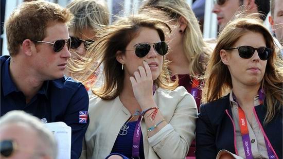 皇家手表馬術(shù)越野賽。歐仁妮公主,哈里王子和公主比阿特麗斯正在觀看2012年倫敦奧運(yùn)會(huì)在在格林威治公園舉行的越野馬術(shù)比賽。