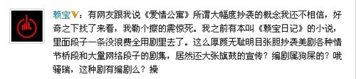 電視劇《愛情公寓3》目前正在熱播,很多觀眾包括名人都表達了對這部作品的喜愛。但8月4日凌晨,微博上的“段子”名人賴寶稱,該劇在未經(jīng)授權(quán)的情況下使用了數(shù)量龐大的他的原創(chuàng)段子。14時許,該微博已被轉(zhuǎn)發(fā)1萬6千余次,評論達7千多條。15時左