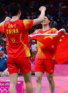 ????蔡赟/傅海峰最終較大的優(yōu)勢(shì)擊敗實(shí)力強(qiáng)勁的鮑伊/摩根森登頂成功,為中國(guó)羽毛球隊(duì)完美收官。倫敦奧運(yùn)會(huì)羽毛球賽事也在男雙決賽結(jié)束后落幕,中國(guó)包攬五金成為最大贏家。