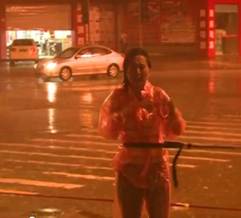 今年第11號強(qiáng)臺風(fēng)“??钡闹行挠?日3時(shí)20分前后在浙江省象山縣鶴浦鎮(zhèn)沿海登陸,登陸時(shí)中心附近最大風(fēng)力14級。在“??钡顷懬?0分鐘,寧波市氣象服務(wù)中心北侖追風(fēng)小組從北侖城區(qū)發(fā)回現(xiàn)場報(bào)道。為了防止被風(fēng)吹跑,出鏡女記者腰上栓繩進(jìn)行報(bào)道。即便如此,女記者還是無法站穩(wěn),甚至一度不得不蹲下。