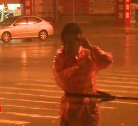 今年第11號(hào)強(qiáng)臺(tái)風(fēng)“海葵”的中心于8日3時(shí)20分前后在浙江省象山縣鶴浦鎮(zhèn)沿海登陸,登陸時(shí)中心附近最大風(fēng)力14級(jí)。在“??钡顷懬?0分鐘,寧波市氣象服務(wù)中心北侖追風(fēng)小組從北侖城區(qū)發(fā)回現(xiàn)場(chǎng)報(bào)道。為了防止被風(fēng)吹跑,出鏡女記者腰上栓繩進(jìn)行報(bào)道。即便如此,女記者還是無(wú)法站穩(wěn),甚至一度不得不蹲下。
