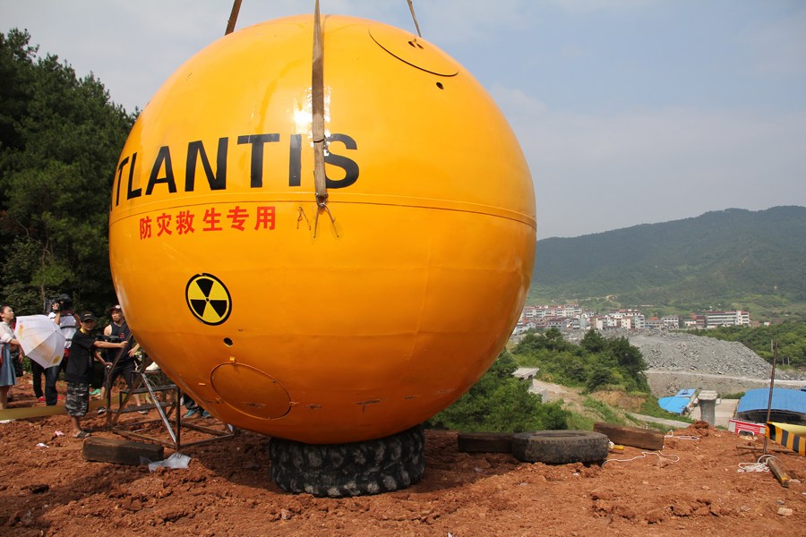 8月6日,義烏商人楊宗福“乘坐”自己發(fā)明的“諾亞方舟”從50米高的上坡上滾下來(lái),向世人展示自己的發(fā)明。據(jù)悉,這個(gè)花費(fèi)150萬(wàn)制造的“諾亞方舟”直徑4米的橘黃色大圓球自重6噸,在水面上可以承載33噸。艙內(nèi)設(shè)有安全座椅、瞭望系統(tǒng)、通風(fēng)系統(tǒng)和衛(wèi)生間等生活設(shè)施,還可以防撞、防輻射、防高