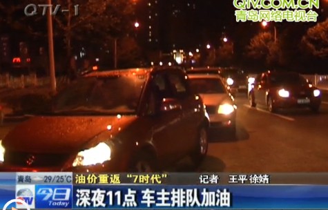 油價(jià)重返7時(shí)代 青島車主深夜11點(diǎn)排隊(duì)加油(組圖)